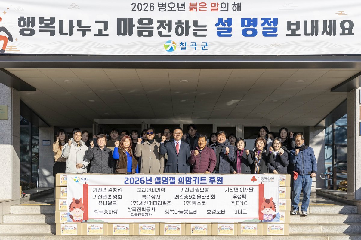칠곡군 관계자는 "경기가 어려운 상황임에도 불구하고 명절마다 잊지 않고 따뜻한 나눔을 실천해 주신 후원자분들께 진심으로 감사드린다"며 "앞으로도 촘촘한 민·관 협력 네트워크를 구축해 복지 사각지대에 있는 취약계층 지원에 최선을 다하겠다"고 밝혔다.