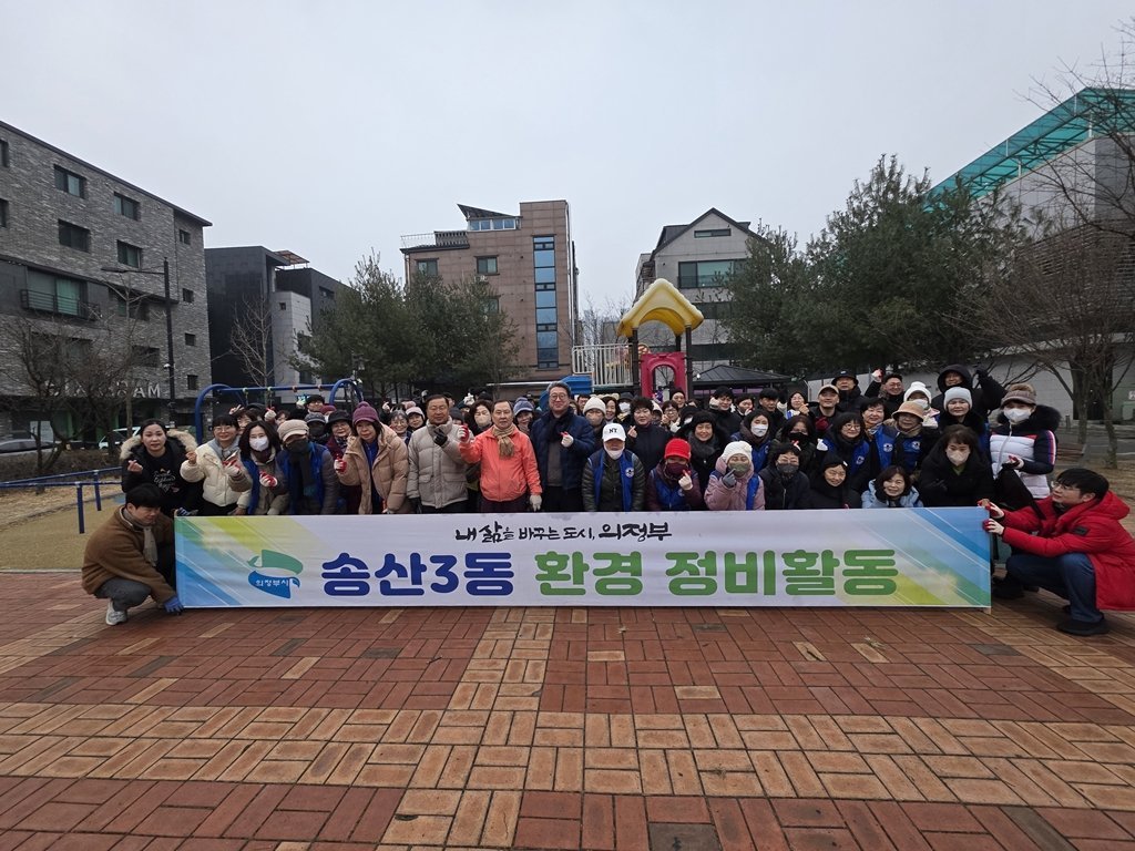 [한국Q뉴스] 의정부시 송산3동행정복지센터는 2월 11일 설 명절을 앞두고 귀성객에게 쾌적한 도시 환경을 제공하기 위해 민관 합동 일제 대청소를 실시했다.
