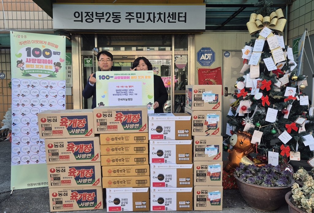 조미경 동장은 “100일간 사랑릴레이에 참여해주신 연세하늘병원에 진심으로 감사드린다”며 “기부받은 물품은 생활고를 겪는 주민들에게 신속히 전달될 수 있도록 세심히 살피겠다”고 말했다.