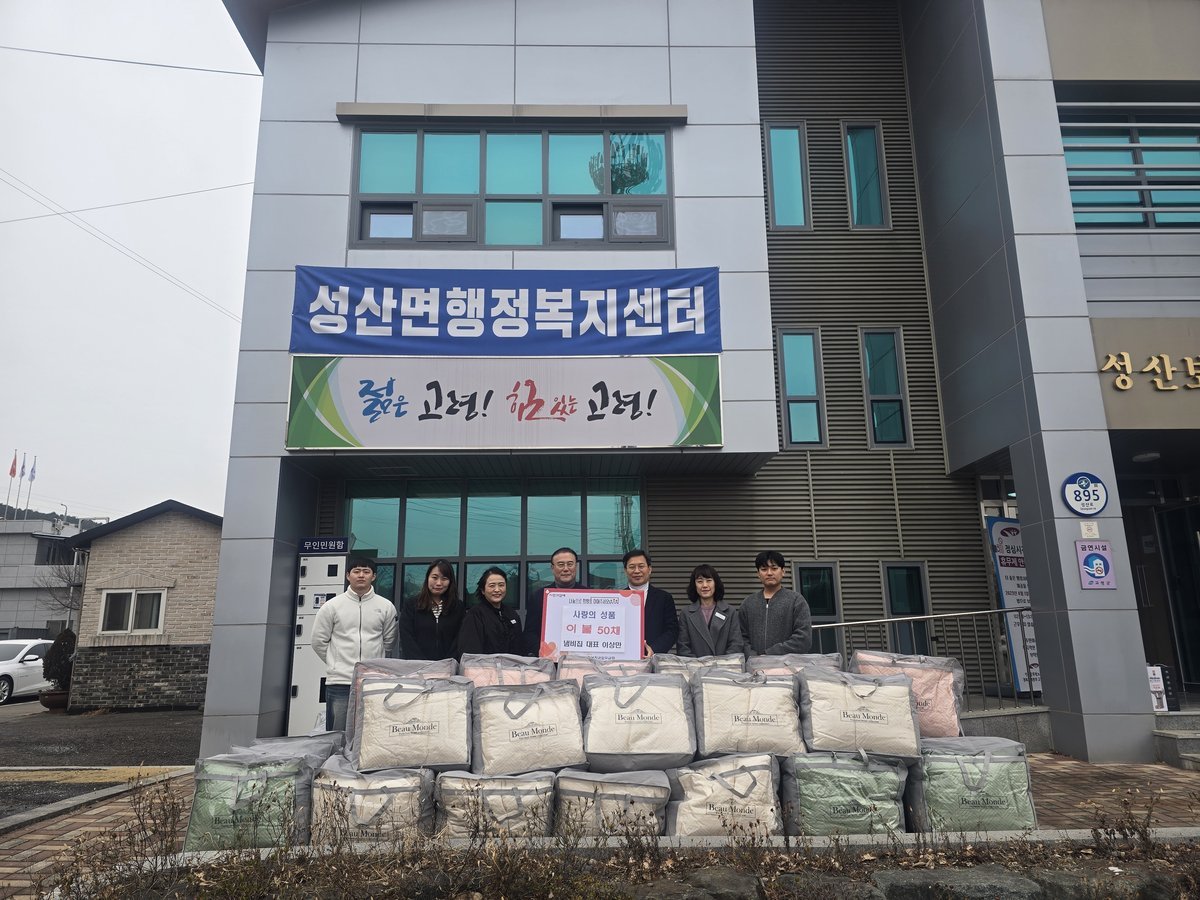 성산면은"명절을 앞두고 귀한 마음을 전해주셔서 감사드리고 전해주신 이불은 따듯한 설 명절을 날 수 있도록 저소득 가구에 소중히 전달하겠다"고 전했다.