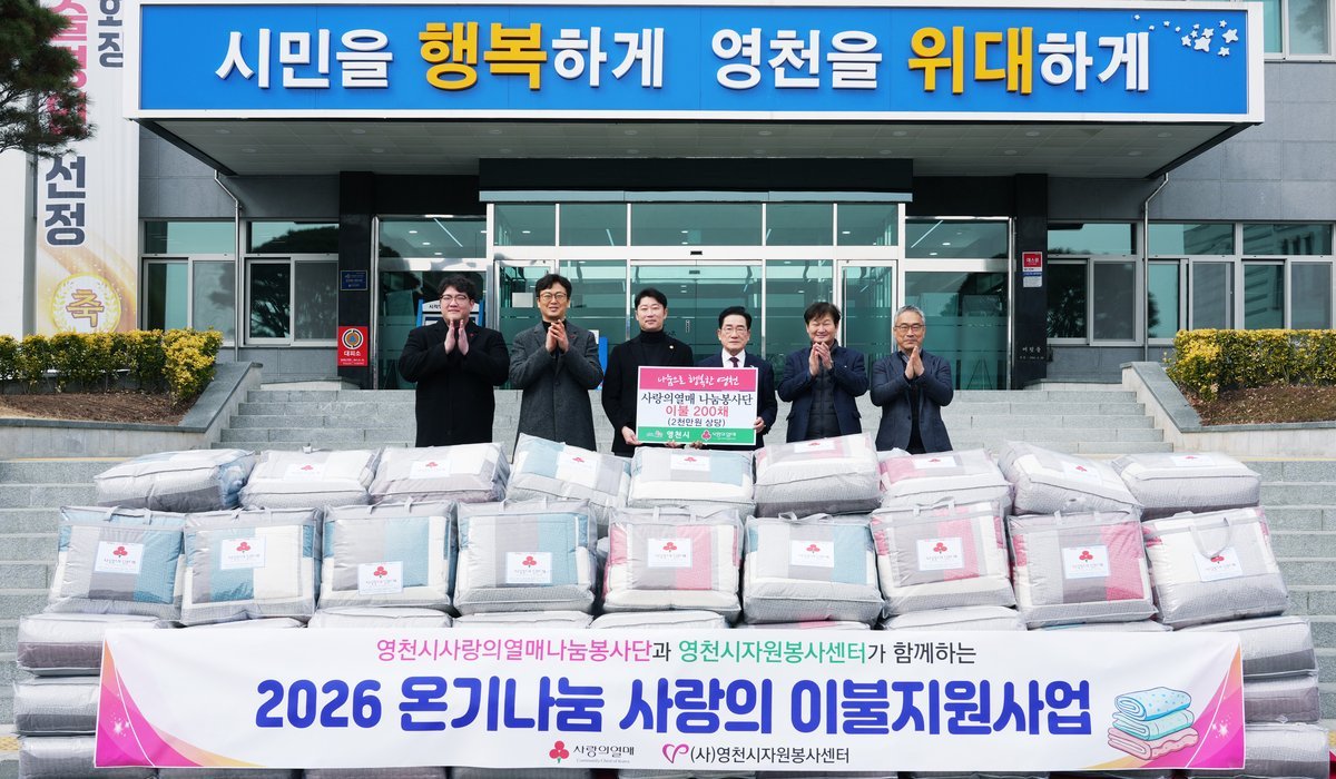 [한국Q뉴스] 영천시는 지난 10일 사랑의열매 나눔봉사단에서 ‘사랑의 이불 지원사업’을 통해 관내 취약계층을 위한 겨울 이불 200채를 지원했다고 밝혔다.