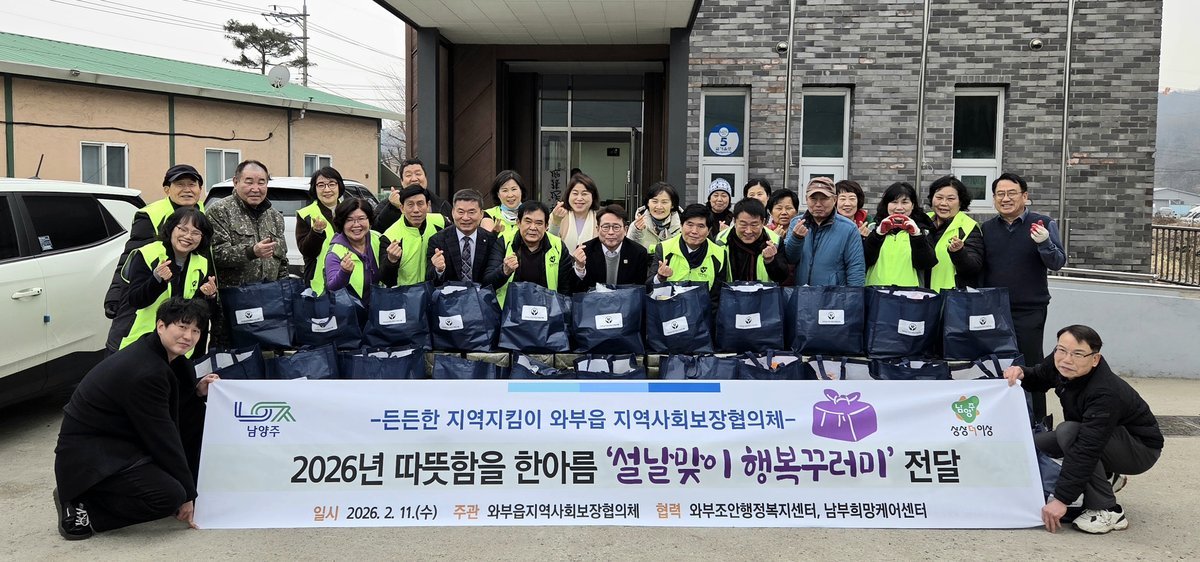 [한국Q뉴스] 남양주시는 11일 와부읍 지역사회보장협의체가 설 명절을 맞아 관내 취약계층 100가구에 ‘2026년 설맞이 행복 꾸러미’를 전달해 이웃사랑을 실천했다고 밝혔다.