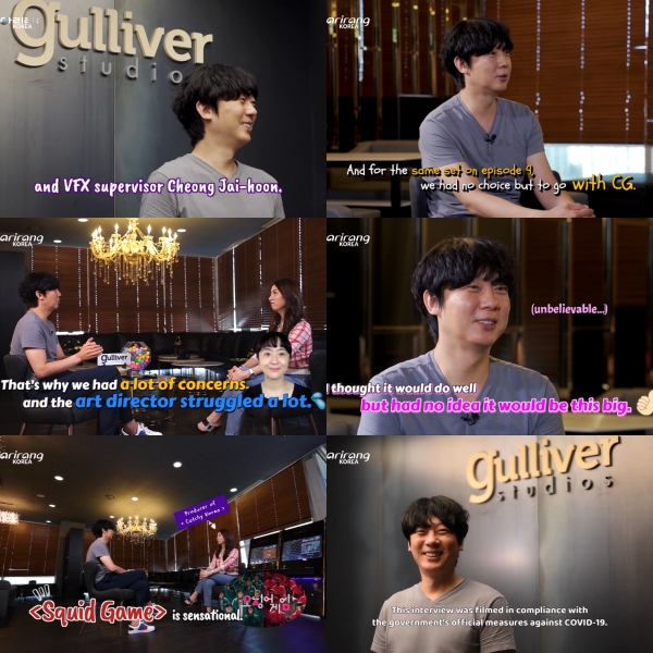 [한국Q뉴스] 넷플릭스 시리즈 ‘오징어 게임’의 컴퓨터그래픽와 시각특수효과를 메인 CG/VFX사로 참여한 걸리버 스튜디오 정재훈 사장이 아리랑TV 인터뷰를 통해 비하인드를 공개했다.