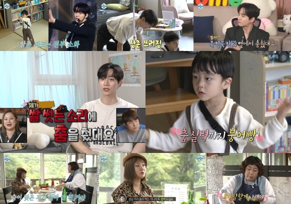 ‘리틀 준호’ 우진이는 거실 스테이지 중앙으로 걸어 나와 무대 동선까지 활용하는 노련함을 보였다.