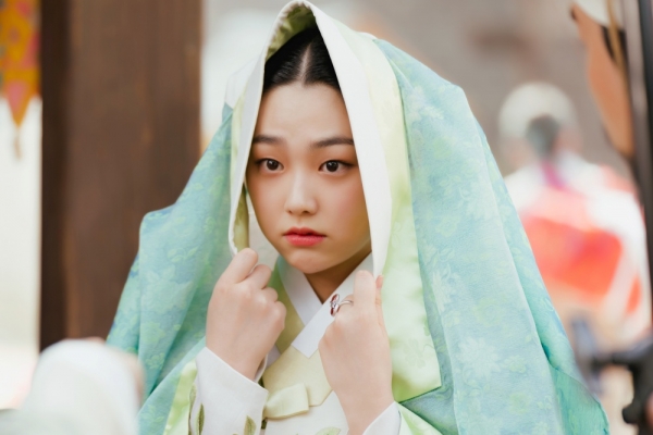 무채색 옷을 입은 로서는 한눈에 봐도 화려한 부잣집 아씨인 애진과 대비되는 모습이다.