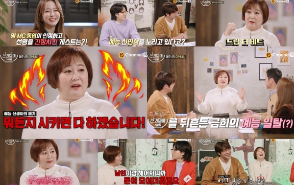 신동엽은 “말이 안 되게 말을 잘한다”고 이금희를 소개했고 이에 박선영은 “오늘 말이 안 되면 말을 안 하려고 한다”고 바짝 긴장한 모습을 보여 웃음을 유발했다.