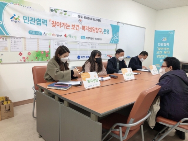 [피디언] 아산시 행복키움지원단이 지난 27일 온양온천역 하부에 위치한 무료급식소 사무실에서 찾아가는 맞춤형 보건·복지 상담창구를 운영했다.