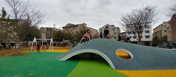 [피디언] 전주시 덕진동 주택단지에 조성된 쇠똥구리어린이공원이 아이들의 엉뚱하고 기발한 상상력이 반영된 특색 있는 놀이공간으로 탈바꿈됐다.