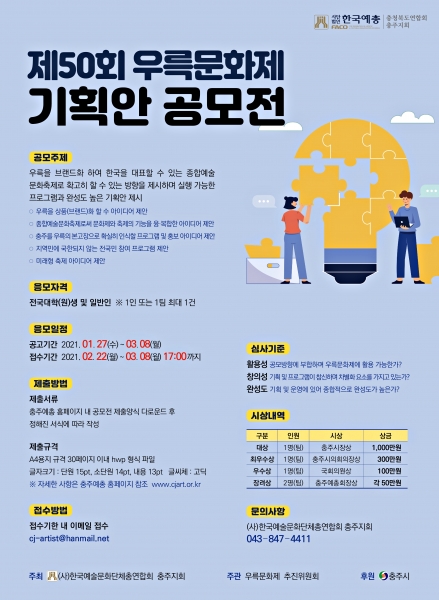 신청서 양식 다운로드 및 공모기획안 제출 방법 등 자세한 사항은 충주예총 홈페이지를 통해 확인할 수 있다.