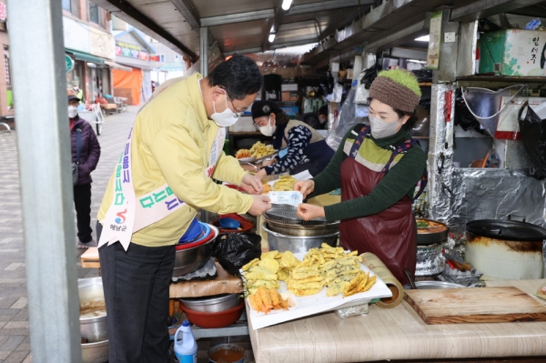 명현관 군수는 “전통시장 등 이용시 마스크 수칙 등 방역 수칙을 지키고 설명절 고향방문 자제 등 잠시 멈춤을 통해 안전한 설을 맞을 수 있도록 하자”며“코로나로 힘든 전통시장 상인을 응원하고 전통시장에 생기와 활력을 불어넣고자 전통시장 활성화에도 적극 노력하겠다”고 말했다.