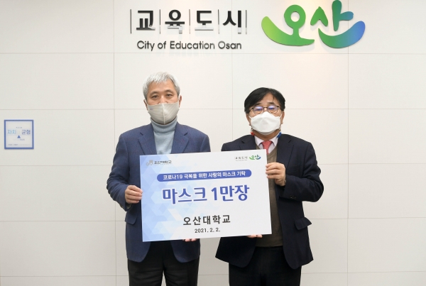[피디언] 오산시는 2일 오산대학교에 코로나19 극복을 위한 비말방지 마스크 1만 장을 기탁했다고 밝혔다.