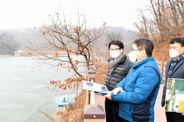 [피디언] 최종환 파주시장이 지난 1일 공릉호수 개발사업과 관련해 공릉관광지 내 공릉호수 산책로 조성지역 현장을 점검했다.
