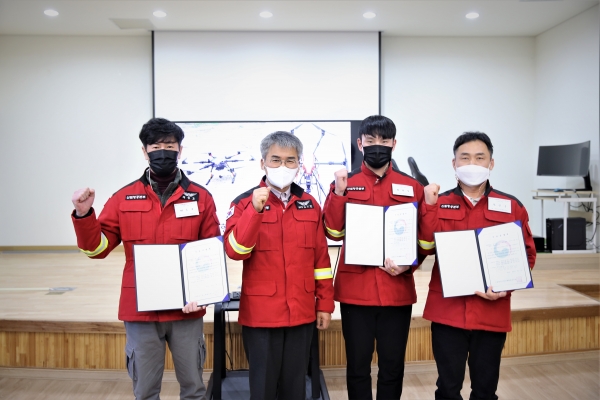 [피디언] 산림청 산림항공본부는 2021년 2월 2일 산림청 드론전문교육기관인 ‘산림항공 드론비행 훈련센터’에서 첫 번째 초경량비행장치 무인멀티콥터 조종자 교육 수료자 3명을 배출했다.