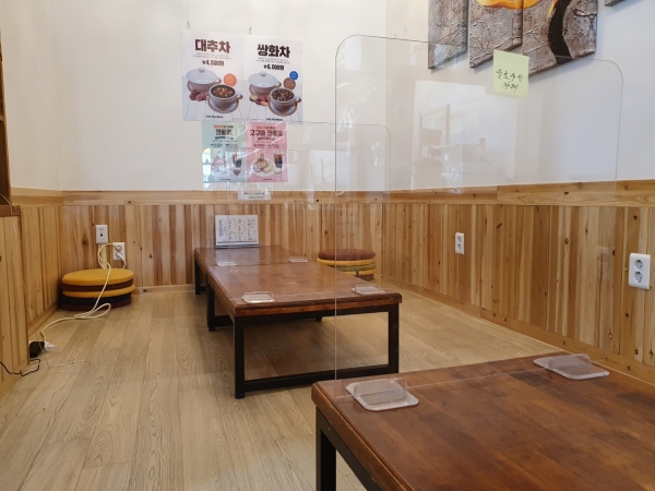 [피디언] 보은군은 코로나19의 감염 확산세가 심각해짐에 따라 사회적 거리두기로 어려움을 겪고 있는 영세음식점 242개소에 대해 각 4개씩 총 968개의 비말차단 칸막이 설치를 무료 지원하기로 했다.