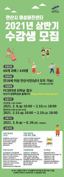 [피디언] 안산시 여성비전센터에서는 오는 8일부터 19일까지 2021년도 상반기 교육 수강생을 모집한다고 3일 밝혔다.