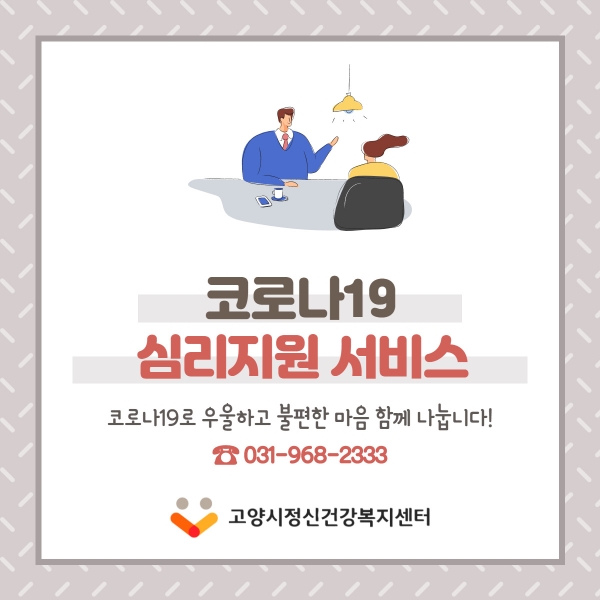 [피디언] 고양시 정신건강복지센터는 코로나19로 인한 불안, 우울 등 심리적 어려움을 겪고 있는 시민들을 대상으로 ‘심리지원 서비스’를 운영하고 있다.