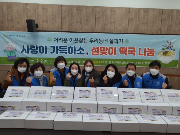 또한 소하1동은 오는 4일 새마을부녀회가 준비한 설맞이 떡국떡 60kg을 복지소외계층 30가정에 전달할 예정이다.