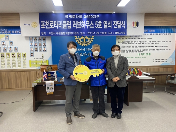 [피디언] 국제로타리 3690지구 포천로타리클럽은 지난 1일 포천시무한돌봄희망복지센터와 협력해 러브하우스 5호 열쇠 전달식을 진행했다.