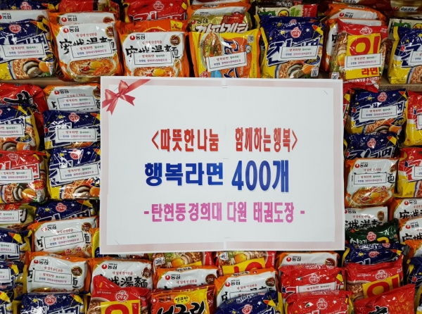 일산서구 산현로 15에 위치한 경희대다원태권도장의 원생들은 십시일반으로 작은 정성을 모아 코로나19로 힘들어하는 관내 취약계층을 위해 사랑의 라면을 기부했다.