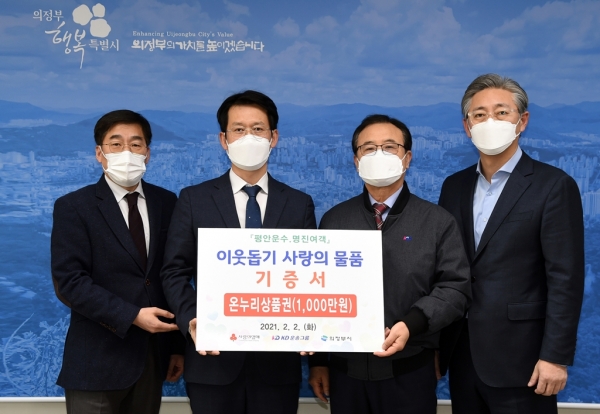 [피디언] 의정부시는 KD운송그룹이 2월 2일 다가오는 설 명절을 맞아 관내 어려운 이웃에게 온누리상품권을 이웃돕기 창구에 기탁했다고 밝혔다.