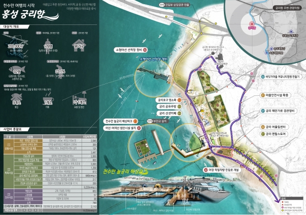 우선 궁리항에 어선과 여객선 접안시설 등 어항 편의시설을 현대화하고 5,057㎡의 규모의 놀궁리 해상파크와 해변조망명소 등 관광기반 및 가두리 양식장 체험 관광자원을 개발해 지역 주민소득창출기반을 마련한다.