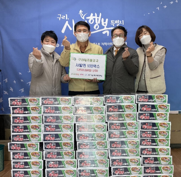 이번 전달식에는 신동규 구리새마을금고 교문지점장, 안재홍 전무 등이 참석했고 후원품인 사발면 100상자는 코로나19로 인해 어려움을 겪고 있는 저소득 취약계층 50세대에 대체식으로 전달될 예정이다.