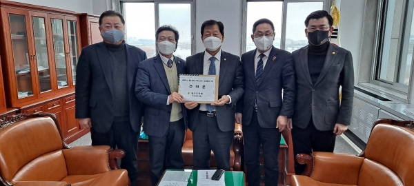 [피디언] 경기도의회 건설교통위원회는 2월 3일 국회에서 윤후덕 기획재정위원장과 윤호중 법제사법위원장을 만나 광역버스 사무의 국가사무 전환에 따른 준공영제 예산의 국가 재정 부담 비율을 당초 합의대로 이행할 것을 촉구하는 건의문을 전달했다.