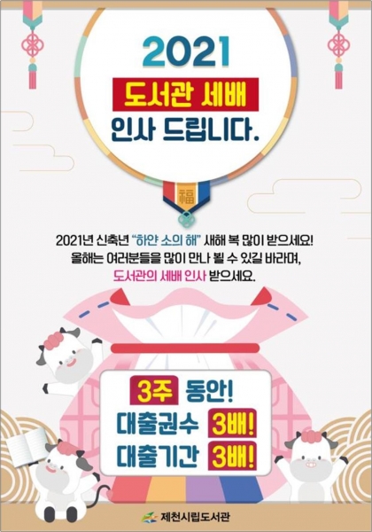 [피디언] 코로나19 관련 임시휴관을 마치고 지난달 19일부터 부분 개관 운영 중인 제천시립도서관의 재개관 이벤트인 ‘도서관 세배 인사 드립니다’ 서비스가 많은 시민들의 호응을 얻고 있다.