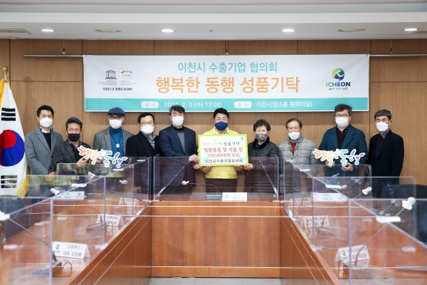 이천시 수출기업 협의회 소속 7개 기업은 지난 3일 생활용품 등 1억원 상당의 성품을 이천시에 기탁했다.