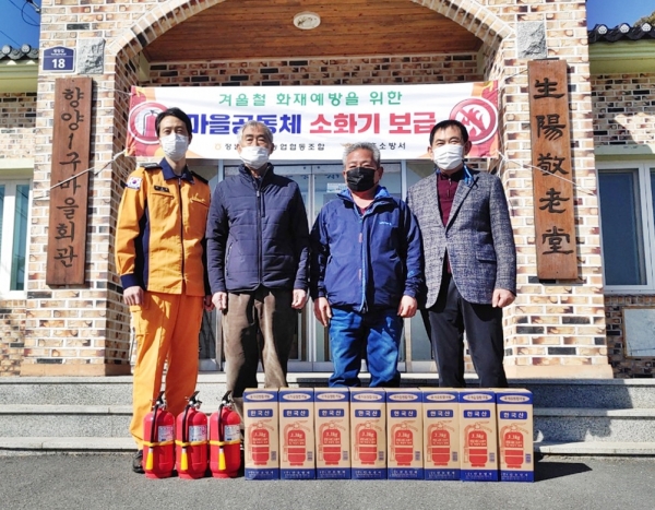 문병운 서장은 “소화기 보급에 협조해 준 강경일 조합장에게 감사드린다”며 “코로나19 사회적 거리두기가 완화되면 마을 주민들을 대상으로 소화기 사용법 교육을 추진하겠다”고 밝혔다.