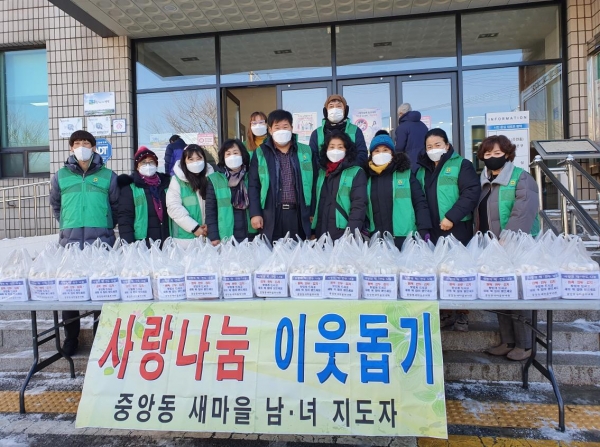 오경준 중앙동장은 사랑 나눔의 활동을 끊임없이 실천하는 중앙동 새마을 부녀회회장 및 회원들에게 깊은 감사의 뜻을 전하며 계속해서 어렵고 힘든 이웃을 위한 도움의 손길을 전달해 행복하고 따뜻한 지역사회를 만드는데 최선을 다하겠다고 밝혔다.