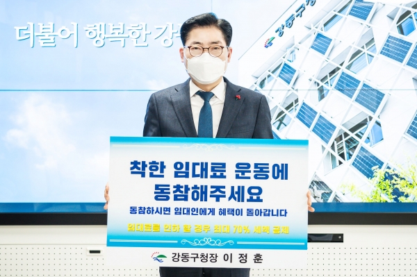 이정훈 강동구청장은 “코로나19로 경제적으로 많이 어려운 요즘 위기를 함께 극복하기 위해 임대료 인하에 적극 동참해 주기를 바란다”고 말했다.