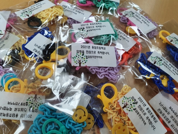 아울러 2월 1일에는 주민자치회에서 ‘마스크 스트랩’ 40개를 제작해 올해 초등학교에 입학하는 용답초등학교 예비 1학년 학생들과 동교 병설유치원 원아들에게 전달하기도 했다.