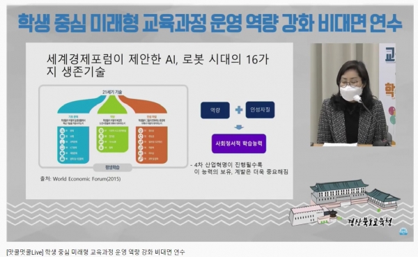 [한국Q뉴스] 경북교육청은 지난 4일 초등학교 교감 및 교육과정 담당 교사 1,000여명을 대상으로 학생 중심 미래형 교육과정 운영 역량 강화 온라인 연수를 했다.