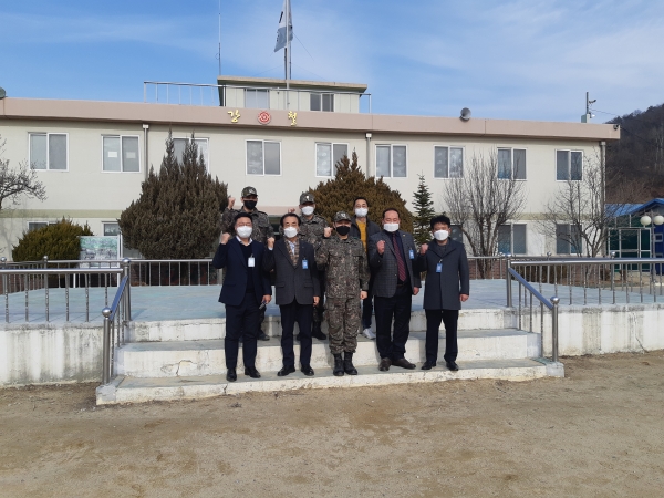 이날 군부대 방문에는 민주평화통일자문회의 구미시협의회, 한국자유총연맹 구미시지회, 구미경찰서 자율방범연합회 임원 10여명이 함께 했으며 코로나19 상황임을 감안해 군부대와 사전 협의 후 최소 인원만 참석했다.