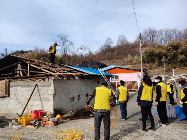 이날 봉사활동은 지난달 28일 강한 돌풍으로 인해 슬레이트 지붕 일부가 날아가 피해를 입은 고령의 주민을 돕기 위해 마련됐다.