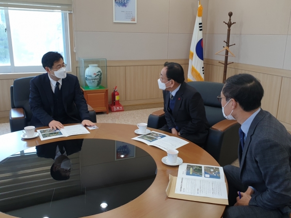 [한국Q뉴스] 김준성 영광군수는 8일 익산지방국토관리청을 방문, 박성진 익산청장을 만나 국도 77호선 도로 확장사업을 건의하고 스마트복합쉼터 공모사업에 대한 협조를 요청했다.