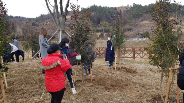 이번 졸업기념 반려나무 심기 행사는 송산초등학교에서 자연학습장으로 자주 이용하는 학교 인근 원산마을 저류지 공원에 졸업생들과 학부모들이 애기동백 20여주를 심고 각자 이름표에 희망 메시지를 적어 학창시절의 추억을 생각하며 졸업 후에도 방문해 보살피기로 했다.