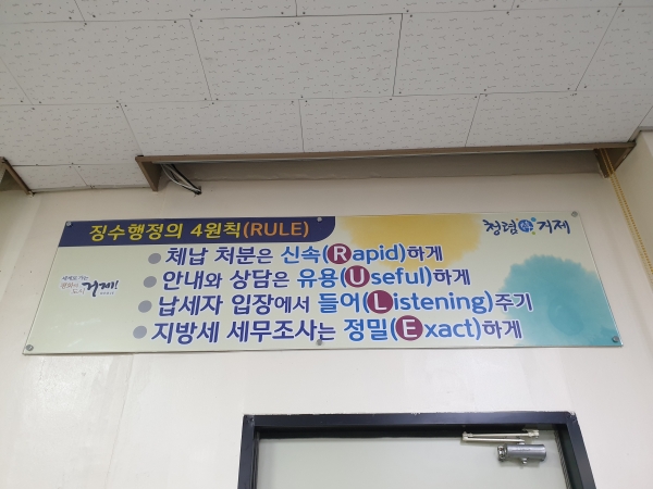 징수행정의 4원칙으로는 ‘체납처분은 신속하게, 안내와 상담은 유용하게, 납세자 입장에서 들어주기, 지방세 세무조사는 정밀하게’로 설정했다.