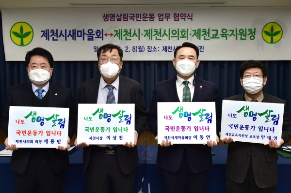 [한국Q뉴스] 제천시와 제천시새마을회는 지난 8일 새마을회관 회의실에서 ‘제천시 생명살림국민운동’ 발전을 위한 업무협약을 체결했다.