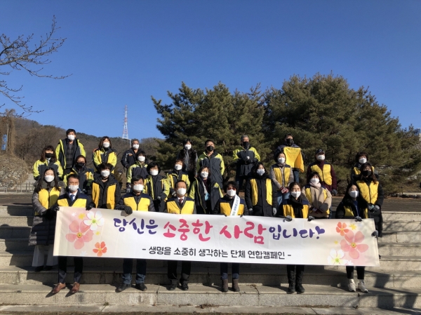 이날 캠페인실시에 앞서 우선 자살사고위험장소로 여겨지는 으슥하고 외진 곳 주변 쓰레기 청소, 잡초제거, 나뭇가지 전지작업등 환경정화 및 미화 작업을 실시하고 생명사랑 현수막을 게시했다.