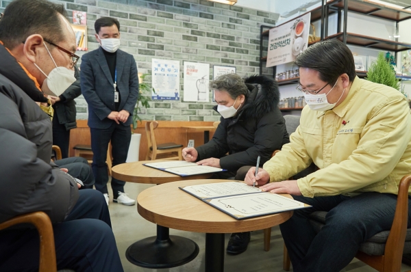힐링카페 ‘온’에서 진행한 이번 협약식에서 온양온천시장의 친절하고 깨끗하고 안전하고 질서 있는 환경조성을 위해 3대 실천과제를 선정했다.