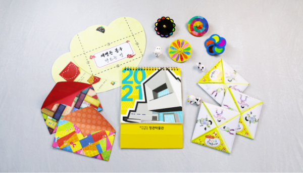 교육재료는 총 4가지로 ‘아기새 소리’가 담긴 유물 카드를 완성한 관람객에게는 신축년 새해 달력을 제공하고 ‘소 인형’의 경우는 세뱃돈 봉투 손팽이 딱지 등 전통놀이 만들기 도구를 제공한다.