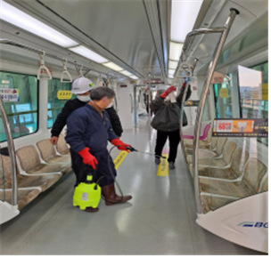 경전철은 매일 운행 전 차량 내부 전체를 소독하고 특히 시민들의 접촉이 많은 손잡이와 의자 등은 회차 시마다 소독이 이뤄진다.