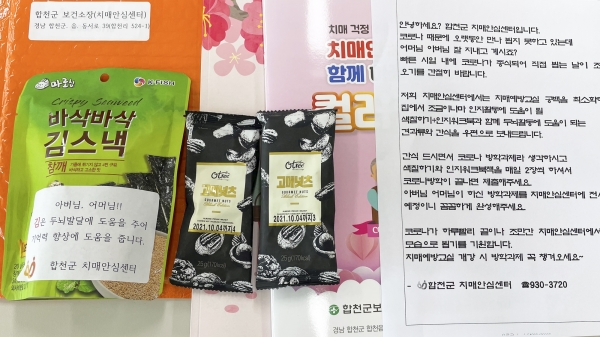 이 서비스는 치매안심센터 프로그램 참여자에게 컬러링 북과 인지 워크북 및 견과류 등을 제공한다.