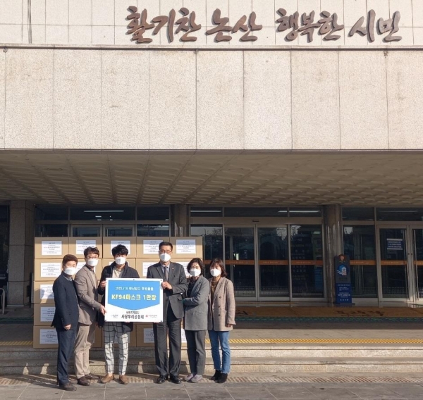 [한국Q뉴스] 논산시가 지난 5일 사회복지법인 사랑우리 공동체에서 운영하는 희망자립장애인보호작업장이 ‘KF94 꿈드래 마스크’ 1만장을 시로 기부했다고 전했다.