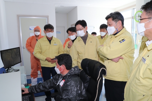 [한국Q뉴스] 김경수 도지사가 설맞이 민생현장 방문 이틀째인 2월 9일 고성군 소재 축산종합방역소를 방문했다.
