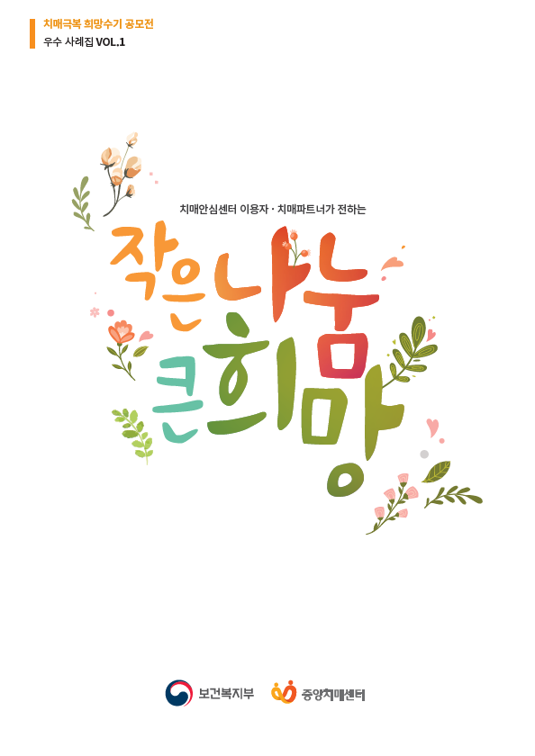 사례집에는 치매안심센터에 설치된 치매환자쉼터의 인지재활 프로그램에 참여해 삶의 활력을 되찾게 되는 치매노인의 이야기, 치매환자 가족 지지 프로그램을 통해 돌봄 부담 해소와 마음의 위로를 받은 치매가족의 이야기 등 13편과, 치매환자와 가족을 위해 봉사해 온 치매파트너의 수기 6편이 담겨있다.