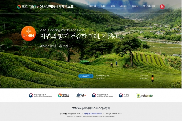 [한국Q뉴스] 하동세계차엑스포조직위원회는 2022하동세계차엑스포에 관한 정보를 제공하고 소통을 위한 누리집과 유튜브를 개설했다고 밝혔다.