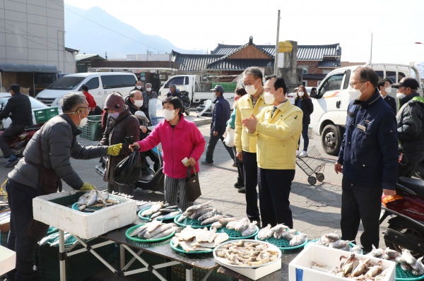 군내 마지막 설 대목장이 열린 10일 안의전통시장을 찾은 서 군수는 시장 상인들과 이용객들과 인사를 나누며 설 명절 지역 경기를 직접 살펴보고 제수용품으로 지역 우수 농특산물 구매와 지역화폐인 함양사랑상품권의 사용을 적극 권했다.